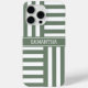 Personalised Name Olive Green White Stripes Chic Case-Mate iPhone Case