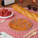 Personalised name orange croquet pattern paper plate