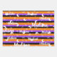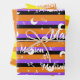 Personalised Name Fairy Halloween Girl featuring glitter, whimsical moon, stars, botanical leaves on striped orange, black, yellow, purple and violet colours. A feminine and cute way to impress your daughter for birthday, sweet 16 or any feminine event.