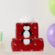 Create your own Personalised with a name, initials, monogram or saying cute penguin with red santa hats, christmas snowflakes and trees with a green heart stripe. Cute penguin gift ideas for penguin lovers.
