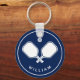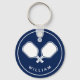 Personalised Name Pickleball Navy Blue & White Key Ring
