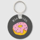 Food art with hand drawn illustration of a pink icing doughnut. Cute food design with personalised name. Gift idea for girls.