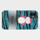 Create your own Personalised with a name,monogram, or initials or saying cartoon cute pink penguin with a turquoise glitter zebra stripes, animal print (not real glitter) background. Cute penguin gift ideas.