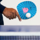 Personalised name pink pig blue sunburst ping pong paddle