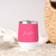 Personalised pink script wine tumbler. Modern, elegant, trendy wine tumbler.