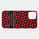 Hearts Clubs Spades Diamonds Pattern iPhone 12 Case - Poker themed iPhone 12 cover in black and red with a custom name template in black and white.