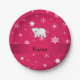 Create your own custom Personalised with just add your name (family name),monogram, greeting or initials or saying cute cartoon polar bear with a pink snowflakes Christmas pattern background and pink stripe. Cute polar+bear Christmas gift ideas.