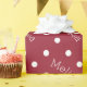 Personalised curved text name with white polka dot pattern print background in pretty wine red colour. Great birthday gift wrap for women, girls or any lady!