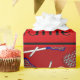 Modern and trendy sports lacrosse pattern with red and blue lacrosse sticks and a white rubber ball with red background and with red stripe personalised with just add your name gifts or monogram gifts or your initials for a unique gift. Sports gift ideas for men and boys and girls. Ideal for birthdays.