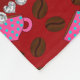 Coffee gift ideas. Coffee cup pattern with pink cups and blue polka dots and brown coffee beans with red background, red diamonds stripe (not real diamonds) personalised with your name gifts or monogram gifts or your initials. Ideal gifts for coffee lovers.