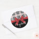 Personalised Name Red Ribbon and Tartan Plaid Classic Round Sticker
