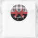 This product design features an illustrated red ribbon and tartan plaid pattern in black, white, and red. With its unique classic graphics, it makes modern chic stickers with personalised text.