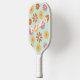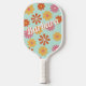 Pickleball paddle in a pretty daisy flower power hippie style pattern in colours of oranges, golden yellow, and pink with the name in colours of Oranges and yellow. Colours of the name or change it to a monogram, can be changed, just ungroup them and choose from the colour pallet. To make more changes go to Personalise this template. On the bottom you’ll see “Want to customise this design even further? Click on the EDIT using Design tool. From there you can change some of the fonts & some colours, move things around or delete what you need. Makes a great gift for your coach, team or best pickleball buddy!