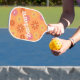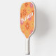 Pickleball paddle in a pretty daisy flower power hippie style pattern in colours of oranges, golden yellow, and pink with the name in colours of Oranges and yellow. Colours of the name or change it to a monogram, can be changed, just ungroup them and choose from the colour pallet. To make more changes go to Personalise this template. On the bottom you’ll see “Want to customise this design even further? Click on the EDIT using Design tool. From there you can change some of the fonts & some colours, move things around or delete what you need. Makes a great gift for your coach, team or best pickleball buddy!