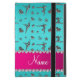 Modern, girly, chic and trendy Custom name turquoise silver (not real silver) gymnastics pattern with gymnast silhouettes stars, hearts and ribbon bows background and with pretty pink diamonds (faux not real diamonds) with sparkly hearts and dots stripe personalised with just add your name gifts or monogram gifts or your initials for a unique gift. Gymnastics gift ideas for women and girls. Ideal for gymnasts.