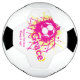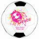 Yellow and pink football / soccer ball splatting in the net customised name ball. Perfect to inspire young female footballers and soccer players to keep it up. Personalise with your own name and message of encouragement. Currently reads Grace Super Striker Keep it up. Unique design by Sarah Trett.