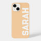 Personalised Name Stylish Modern Minimal Peach Colour iPhone 14 Case Minimal Monogram Cute Elegant Iphone Cases.