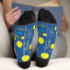 Typographic short personalised name text in shades of blue, yellow and white on a dark blue background socks. Background colour can be changed if required. Personalised graphic tennis balls and text personalised design ideal for when playing tennis or watching tennis. Personalise with your own short name, currently reads Charlie for help with personalisation and other name lengths please contact me. Designed by Sarah Trett for www.mylittleeden.com only on Zazzle.