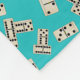Fun, trendy and modern white black domino pieces with turquoise background and a turquoise black stripe personalised with your name, monogram, initials or your own custom words. Ideal domino gifts for lovers of games.