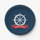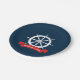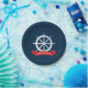 Personalised name, white nautical navy ship wheel, and red text or message banner.