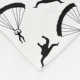 Modern and trendy sports black skydiving pattern with sky diver and parachutes pattern on a white background and black stripe personalised with your name, monogram or initials. Sky diving gift ideas for boys, girls, men and women.