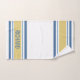 Trendy striped towel set with yellow and blue stripe pattern. Personalise the modern patterned towels with your name.