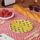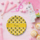 Personalised name yellow bowling pattern paper plate