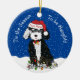 Cute Personalised Black and White Cartoon Bernedoodle Puppy wearing custom Santa hat, red bow with jingle bells, tangled in christmas lights. Festive "Tis the Season To be Naughty" - holiday blue snowy background. Add your bernedoodle's name to this adorable holiday ornament!