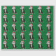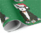 Cute Personalised Black and White Cartoon Bernedoodle Puppy wearing custom Santa hat, red bow with jingle bells, tangled in christmas lights. Festive holiday green snowy background. Add your bernedoodle's name to this adorable holiday christmas wrapping paper!