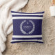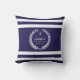 A personalised Nautical Family Emblem or crest and Wreath design. Simple, elegant, modern and trendy Nautical striped pattern or design for square or lumbar size Pillows or Cushions. Navy Blue and light grey sailing stripes with an accent Navy Blue colour block and wreath and anchor symbol with your custom family Name, Monogram or Initial in silver grey. Click the 'Customise it' button to personalise this pillow or cushion and add your own family name and date. This trendy contemporary modern coastal design is perfect for bedrooms, boats, beach houses, holiday houses, teenagers, college dorm or university room, home decor, office. Choose your own font and colours to make it your own. Great for Christmas, Birthdays, Anniversary or Wedding gifts. For more colours go to zazzle.com/d_zone_designs
