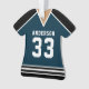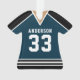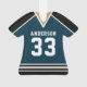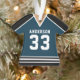Celebrate your hockey star with this personalised navy and black hockey jersey ornament. Perfect for commemorating a special season, player, or team. Customise it with a name and number to create a unique keepsake.
