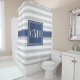 Elevate your bathroom with this classic and stylish navy and grey striped shower curtain. The timeless design features bold navy blue stripes alternating with soft grey stripes, creating a clean and sophisticated look. Personalise it with your initials or monogram for a unique touch.