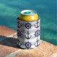 Personalised Navy Blue Anchor Boat Wheel Nautical Can Cooler