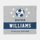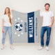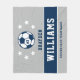 Personalised Navy Blue and Grey Soccer Player Name Fleece Blanket