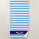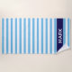 Striking cabana stripe beach towel with blue,red and white striped pattern. Personalise with your name.