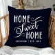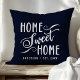 Bring warmth and charm to your home with this personalised navy blue "Home Sweet Home" throw pillow. The elegant script and customisable family name create a welcoming touch for your living room or bedroom. The deep navy colour adds a touch of sophistication to any home décor style.