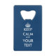 Personalised keep calm and your text bottle opener. Credit card size. Vintage keepcalmandcarryon typography design with little crown. Make your own funny keep calm and carry on parody. Keepcalm and drink beer. Keep calm and party on. navy blue or custom background colour. Cool gift idea for men and women who love drinking beer.
