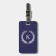 Personalised custom Monogram with wreath or crest pattern in white on a navy blue background with Monogram or Initial on the front and address details on the back for travel bag luggage tags. Click the 'Customise' button to personalise your gift and add your own initials on the front and address information on the back. Choose your own font and colours to make it your own. This stylish, elegant and chic design will make a great cute gift or fashion accessory for yourself or someone you love. Perfect small gift for Christmas, Birthdays, College, Thank You. Suitable for men, boys, women, teenagers, girls. For more colours go to: www.zazzle.com/D_Zone_Designs