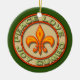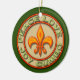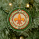Personalise this Fleur de Lis Peace Love Gumbo ornament for a special keepsake. The ornament features a Fleur de Lis symbol encircled by the words Peace, Love, Joy, Gumbo in a red, green and yellow imitation neon sign design.