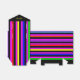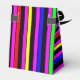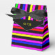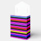 Tall party favour box in bright neon stripes with black.  Teen girl's party gift for friends with name template on the front.  Personalise each with guests' names and tie with a ribbon / bow- choose any colour.