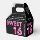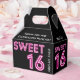 This unique Sweet Sixteen favour box design features "Sweet Sixteen" in hot pink text and a black background. Personalise with a name and date and even a custom Thank You salutation.