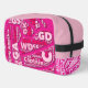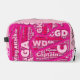 Personalised netball gift idea pink cosmetic bag with heart design and name initial. Great gift idea for netball players.