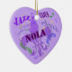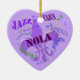 Jazz up your Christmas Tree with this heart shaped ornament featuring a purple Fleur de Lis symbol with the letters NOLA (New Orleans, La.) across the centre in an upbeat design featuring the names of New Orleans music genres such as jazz, blues, ragtime, zydeco and Cajun. Personalise the back with your own message or delete the text for a blank purple back.