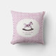 Pink and brown rocking horse pillow, personalised newborn pillow