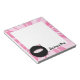 For lovers of all things ninja, this design features an adorable cartoon pig dressed in a black ninja outfit with only the pig's ears, eyes, nose and trotters visible. The border of the notepad shows a starburst pattern in shades of pink. Customise the text to create a personalised notepad for the ninja lover. sgb01