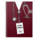 Creative nurse notebook featuring medical themed maroon hospital scrubs and ID badge design. Edit text to add nurse's name and the year.