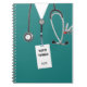 Creative nurse notebook featuring medical-themed hospital scrubs and ID badge design. Edit text to add nurse's name and the year.