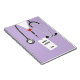 Creative nurse notebook featuring medical themed lavender hospital scrubs and ID badge design. Edit text to add nurse's name and the year.