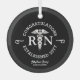 Personalised Nurse Graduate Black White Medical Glass Ornament is perfect for a student nurse graduating from nursing school. It has a modern design with customisable black background and white caduceus symbol with "RN" on the centre. The text "congratulations" is curved over the symbol and the established year. Name is in trendy calligraphy script lettering followed by school or college name.