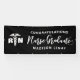 Decorate for a nurse graduation party with this Personalised Nurse Graduate Congratulations Custom Banner. It has a trendy minimalist design on black background, white medical caduceus symbol with "RN." The text is "congratulations nurse graduate" followed by the personalised name. It has modern hand lettered script. CLICK THE PERSONALIZE FURTHER OPTION AND ENTER NAME.